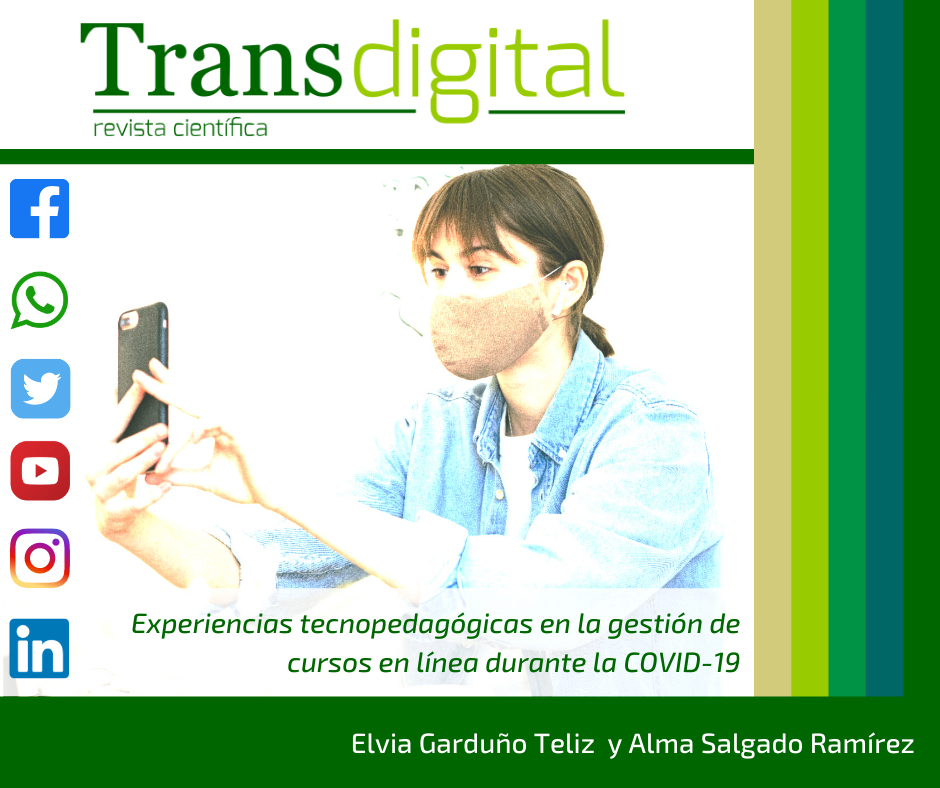 Todos los artículos en la revista Transdigital están licenciados bajo Creative Commons Attribution 4.0 International License (CC BY 4.0). Usted es libre de: Compartir — copiar y redistribuir el material en cualquier medio o formato. Adaptar — remezclar, transformar y construir a partir del material para cualquier propósito, incluso comercialmente. La persona licenciante no puede revocar estas libertades en tanto usted siga los términos de la licencia. Lo anterior, bajo los siguientes términos: Atribución — Usted debe dar crédito de manera adecuada, brindar un enlace a la licencia, e indicar si se han realizado cambios. Puede hacerlo en cualquier forma razonable, pero no de forma tal que sugiera que usted o su uso tienen el apoyo de la licenciante. No hay restricciones adicionales — No puede aplicar términos legales ni medidas tecnológicas que restrinjan legalmente a otras a hacer cualquier uso permitido por la licencia.