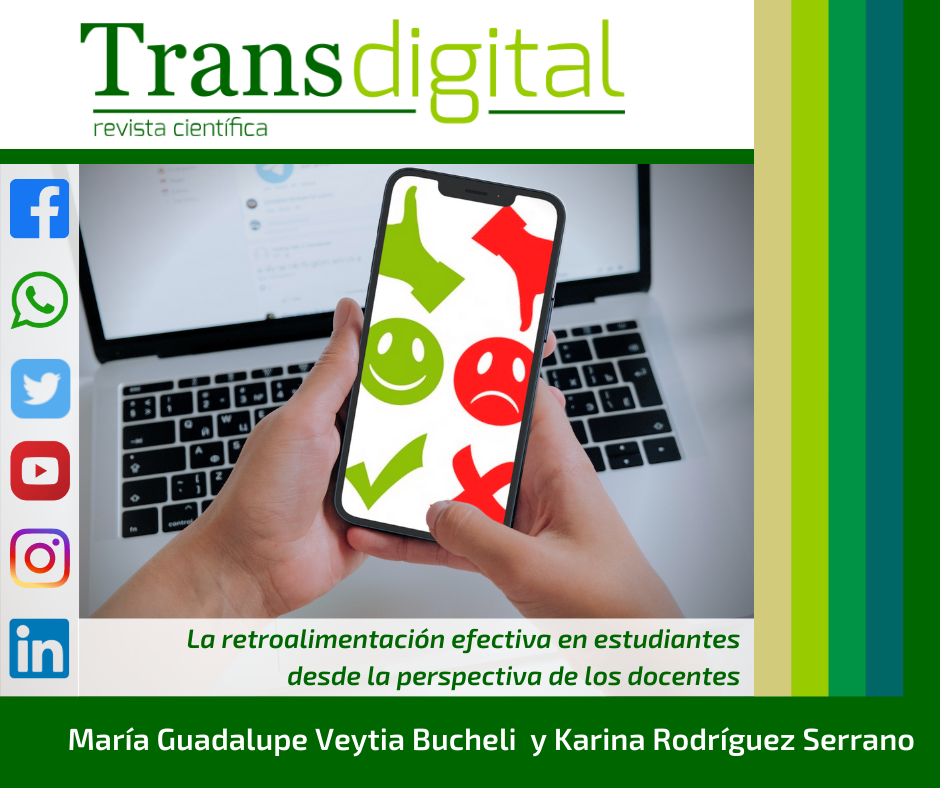 Transdigital es una publicación semestral bajo el modelo de publicación continua y es editada por la Sociedad de Investigación sobre Estudios Digitales S.C. Dirección: Circuito Altos Juriquilla 1132. C.P. 76230, Querétaro, México. Tel. (442) 301-3238 www.revista.transdigital.mx revista@transdigital.mx. Editor en jefe: Alexandro Escudero-Nahón. Reserva de Derechos al Uso Exclusivo No. 04-2022-020912091600-102, ISSN 2683-328X, ambos otorgados por eI Instituto Nacional del Derecho de Autor.