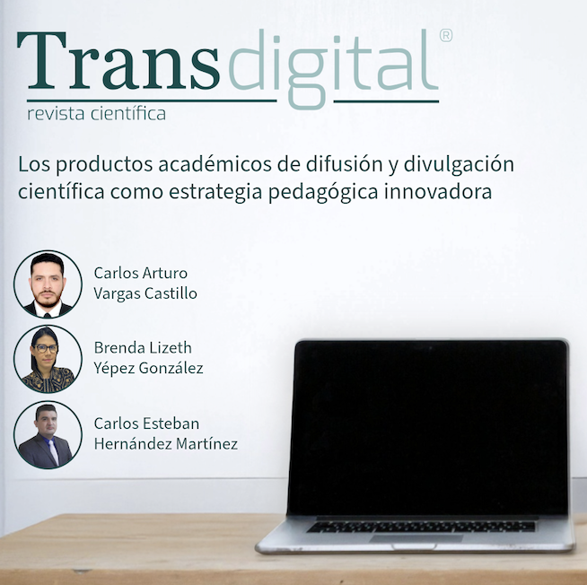 Todos los artículos en la revista Transdigital están licenciados bajo Creative Commons Attribution 4.0 International License (CC BY 4.0). Usted es libre de: Compartir — copiar y redistribuir el material en cualquier medio o formato. Adaptar — remezclar, transformar y construir a partir del material para cualquier propósito, incluso comercialmente. La persona licenciante no puede revocar estas libertades en tanto usted siga los términos de la licencia. Lo anterior, bajo los siguientes términos: Atribución — Usted debe dar crédito de manera adecuada, brindar un enlace a la licencia, e indicar si se han realizado cambios. Puede hacerlo en cualquier forma razonable, pero no de forma tal que sugiera que usted o su uso tienen el apoyo de la licenciante. No hay restricciones adicionales — No puede aplicar términos legales ni medidas tecnológicas que restrinjan legalmente a otras a hacer cualquier uso permitido por la licencia.
